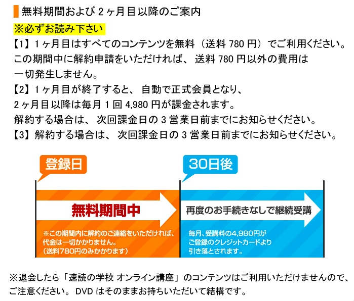 月額 4,980円の速読オンライン講座に初月無料で入会ということのようですね^^;