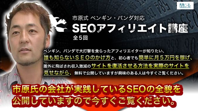 SEOの第一人者・市原高一さんのアフィリエイト講座が無料です^^
